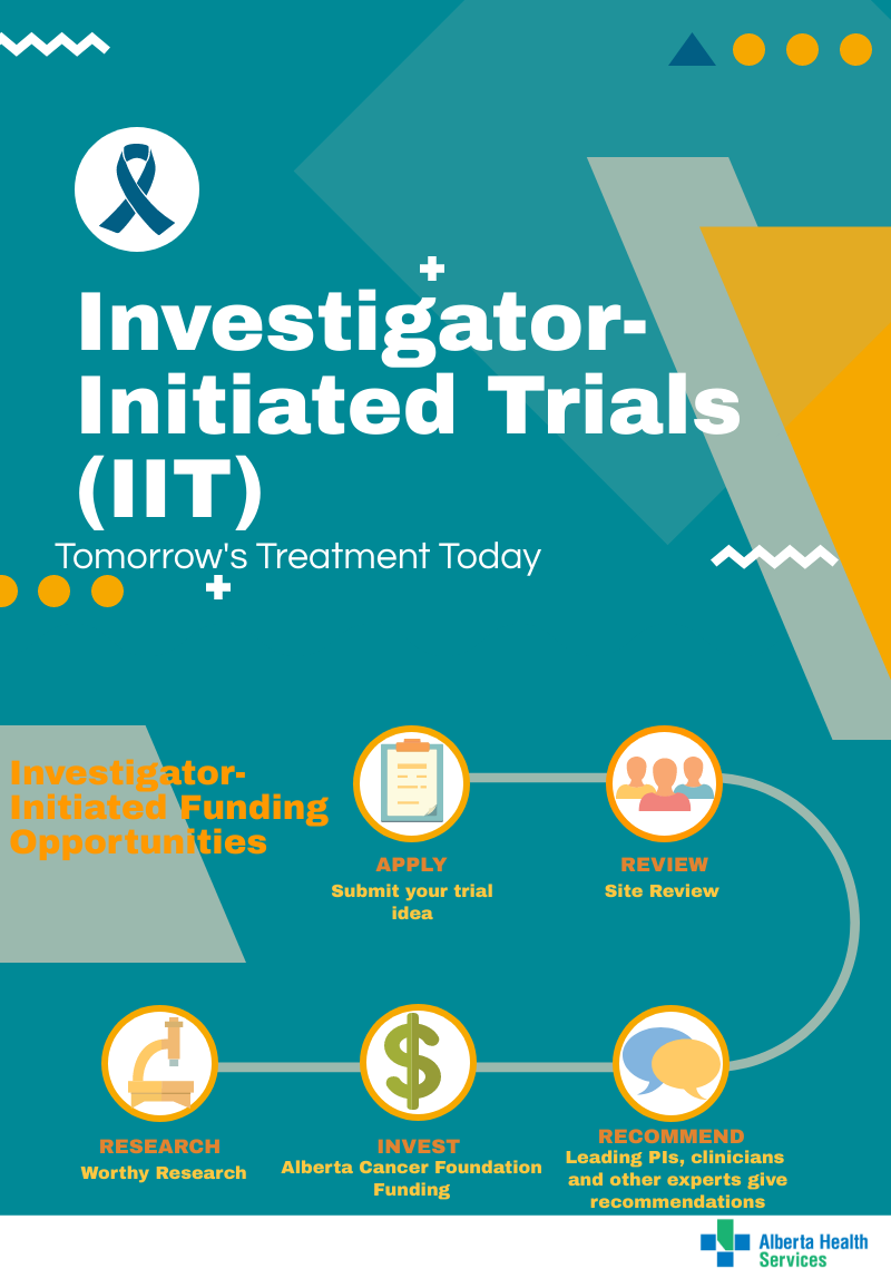 The Provincial IIT Review Committee reviews the proposed IITs for collaborative opportunities between cancer centres and seek support for funding approval. Funding for successful IITs is made available through the Alberta Cancer Foundation.